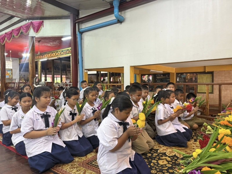 นำนักเรียนระดับชั้นประถมศึกษาปีที่ 3 เข้าร่วมทำบุญเนื่องในวันพระ ปีการศึกษา 2568